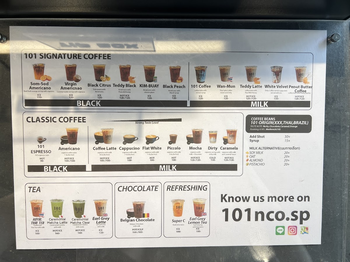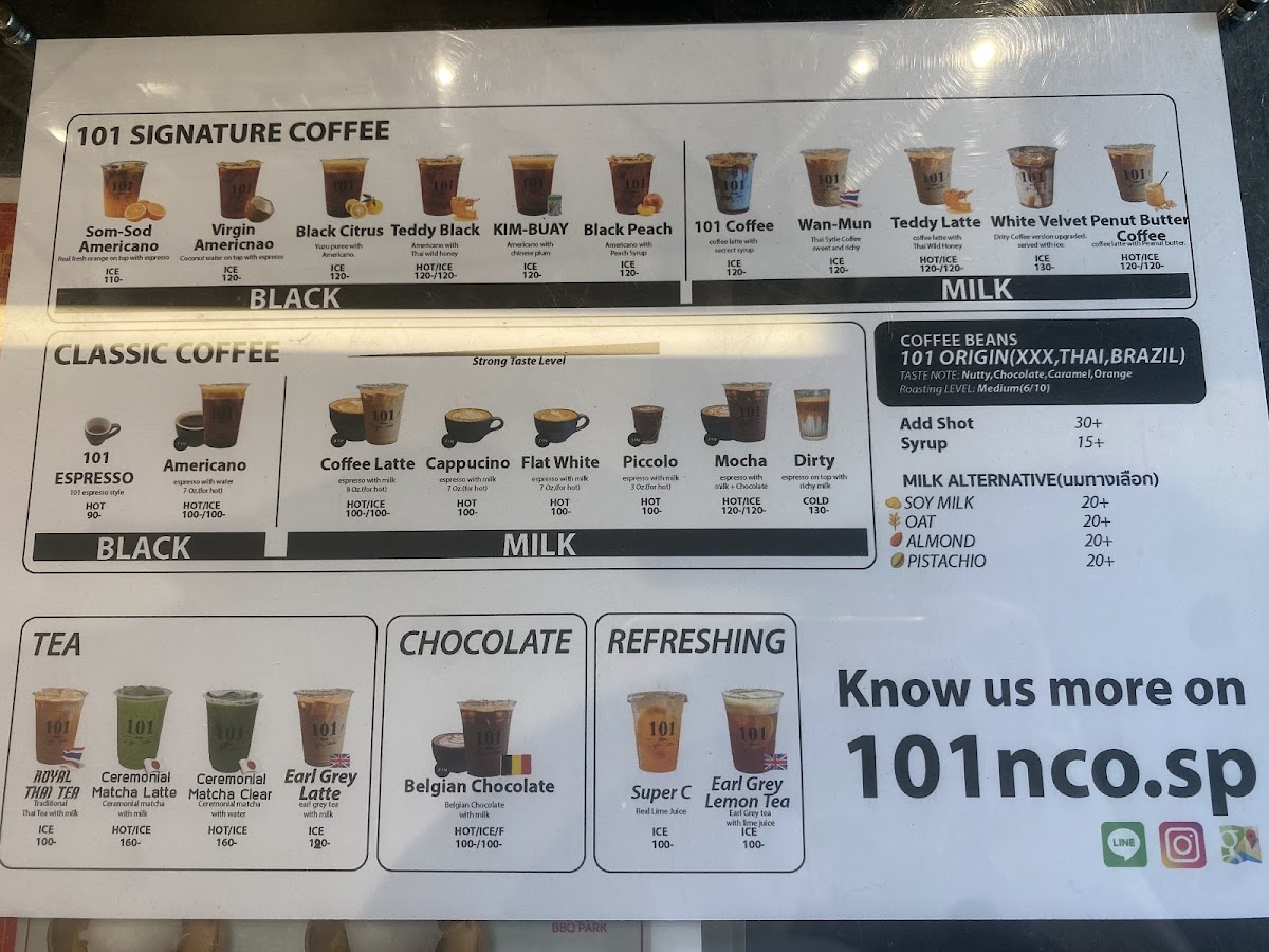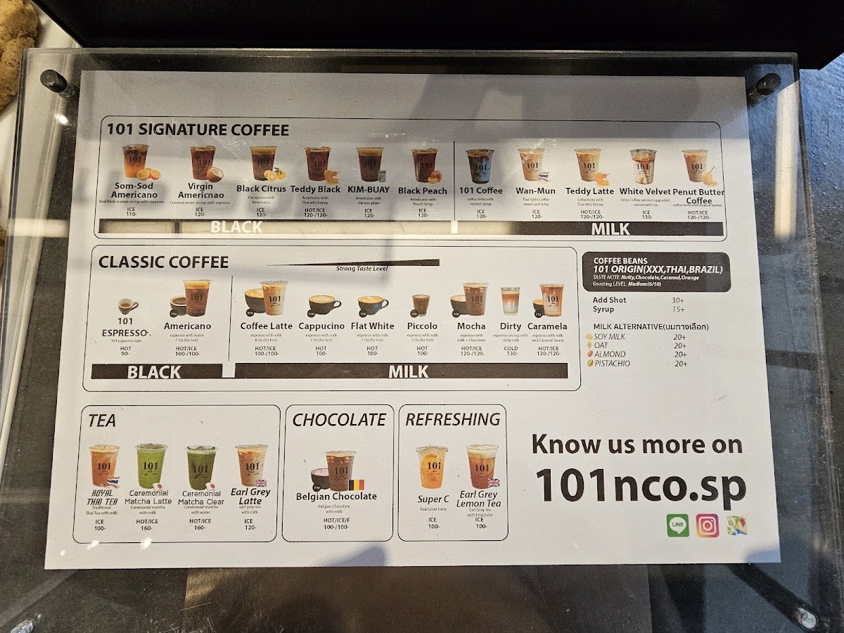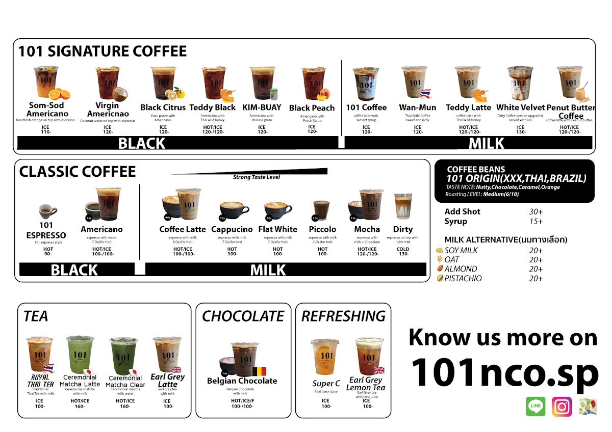 Discover the exquisite offerings at 101 & Co. Specialty Coffee Station @ SPlace ถ้าไม่มาลองจะพลาดมาก, a charming coffee shop located in the heart of Bangkok. Renowned for its expertly crafted beverages, this café excels in serving both traditional and unique flavors. The highlight of the menu is the refreshing "Kim-Buay," a delightful concoction infused with ume, perfect for adventurous coffee lovers.