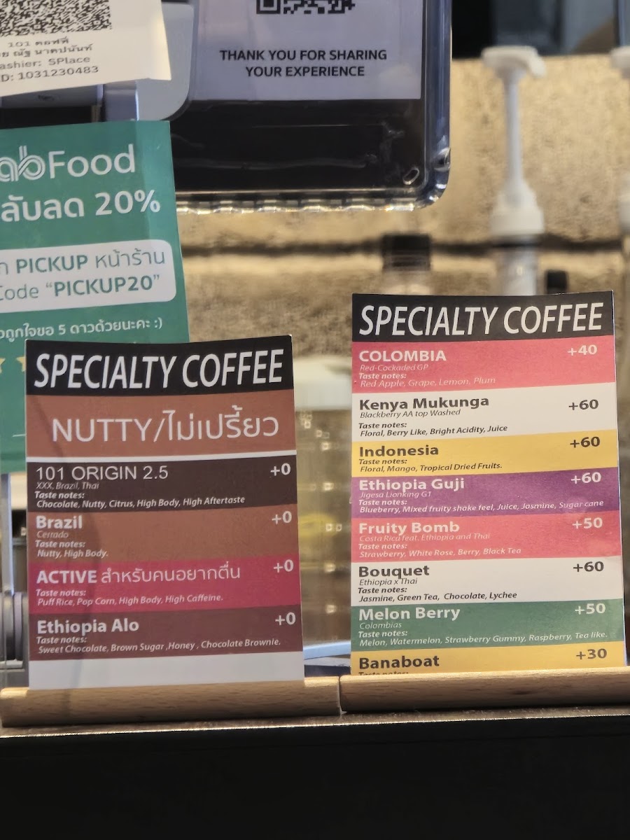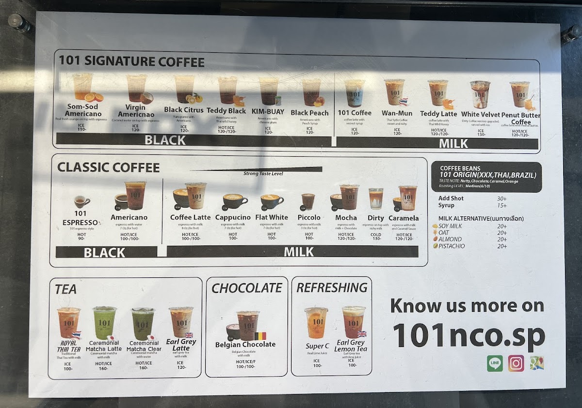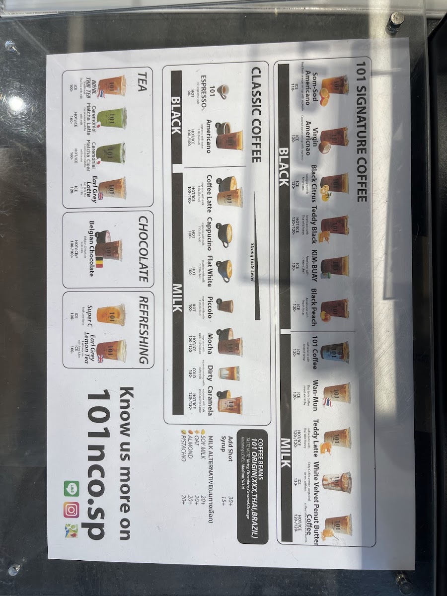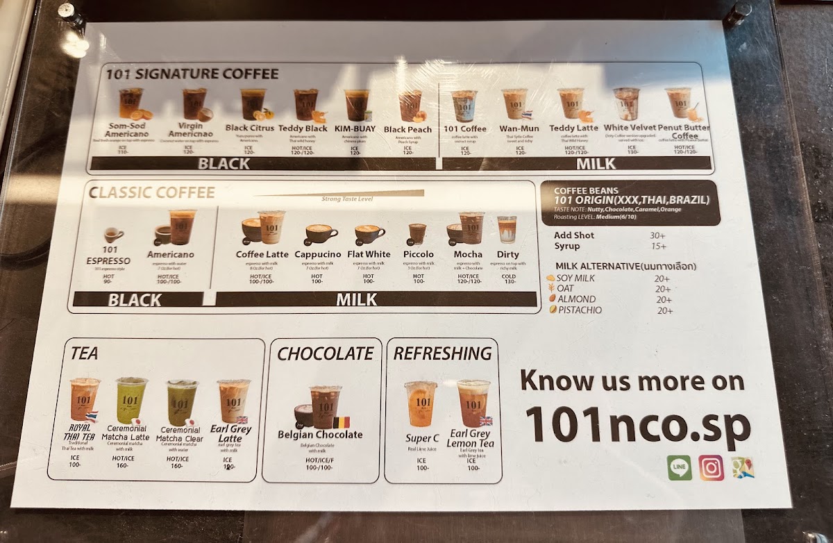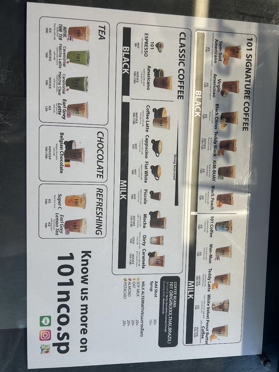 Discover the exquisite offerings at 101 & Co. Specialty Coffee Station @ SPlace ถ้าไม่มาลองจะพลาดมาก, a charming coffee shop located in the heart of Bangkok. Renowned for its expertly crafted beverages, this café excels in serving both traditional and unique flavors. The highlight of the menu is the refreshing "Kim-Buay," a delightful concoction infused with ume, perfect for adventurous coffee lovers.